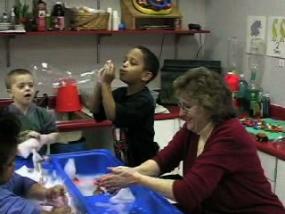 In this videative we have a wonderful opportunity to observe a role-reversal between teacher and child. While playing at the water table, a four-year-old boy named Chris has discovered how to use his hands to blow bubbles. Chris has a rich understanding of his newfound skill. Watch how Chris’ teacher encourages him to step into the role of instructor. She begins by imitating Chris’ manner of positioning his hands to make bubbles. The teacher then directly asks Chris to give her instructions. She continues to seek Chris’s guidance for each step in the bubble making process. Notice how by doing exactly as Chris says and nothing more, the teacher encourages him to give more detailed instruction. This videative allows us to observe the strategies Chris’ teacher employs—including encouraging Chris to step into the role of instructor—in order to make Chris’ knowledge more explicit.