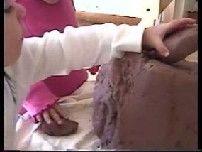 One year olds reveal their expectations by the subtle form of their actions on a big block of clay.