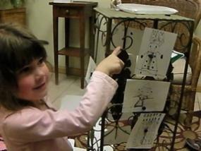 The teacher in this video has been working with a group of five-year-old children to create symbols that record a sequence of events and thereby tell a story, a pictorial storyboard. Using a sequence of drawings in this manner scaffolds the children's construction of events that cause or stage subsequent events, the pre-requisites for a good story. There is no particular intent to use this time for invented spelling, but the teacher decides to go with the children's idea to write instead of simply tell the story. Let’s look at this clip both for what it teaches us about invented spelling and for how a set of three drawings helps the children think about story structure. Your purchased download will include text that points out the significance of particular segments of the video and also includes a full transcript with time code. Runtime 3 minutes and 16 seconds