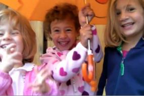 In this video clip, Jordan and her friends discover that an umbrella is better when shared. Jordan (heart coat) understands that the value of an umbrella is increased when it’s raining, and as the umbrella holder, she too gains social importance. Unlike a raincoat, the umbrella is unique in that its design accommodates more than one child at a time. Jordan learns that she can continue to enjoy the umbrella while choosing to also extend its benefit to others. Throughout the episode the children construct several different relationships around this ordinary, everyday object. As the clip begins, the girls introduce the umbrella as a kind of decorative artifact bearing a familiar motif. Isabella (dark purple coat) announces, “I have an umbrella too.” Jordan (heart coat) replies, “Look at our umbrella.” Isabella says, “Yeah. Ours is a ladybug,” and Jordan says, “Mine’s an elephant.” Meanwhile, Celia (sweater coat) treats the umbrella as a functional object by following along and trying to duck underneath alongside Isabella (00:08 – 00:14). The umbrella is given social significance as an object of inclusion when Sara (lavender & purple coat) approaches Jordan and asks, “Can I get under too? (00:21). Shortly thereafter, three girls duck underneath (00:28) and form a group of five. For a short time, the close shelter of the umbrella allows the girls to enjoy a sense of togetherness and fellowship (00:29 – 00:38). Next, Jordan lends a game-like quality to the girls’ experience by playfully removing the umbrella and exposing the group to the lightly falling rain, causing giggles all around (00:38 – 00:44). As some of the children pursue a new play theme, Audrey (pink coat) works to maintain her partnership with Jordan by re-joining her “inside” the umbrella (00:56). Jordan reciprocates by inviting Audrey to “come here,” as she moves to a new location. Notice that Jordan uses the umbrella as a marker to define their place on the playground (01:06). When Sara interjects an unrelated pretend script (mud pie), the portability of the umbrella allows Jordan and Audrey to simply back away a few steps (01:17). Jordan enjoys a sense of social importance as she uses the umbrella to provide shelter, create a sense of space, and foster social intimacy. Further, she has discovered that unlike many other items on the playground (tricycle, swing, sand shovel), the umbrella is an object that can be shared without needing to give it away (i.e., turn taking). As such, Jordan cleverly works to maintain control over the umbrella. At first she playfully moves it away from Sara’s grasp (01:25 – 01:29). When this strategy does not work Jordan says, “Stop” (01:30), and extends her arms to lift the umbrella up (01:33), conveying an implied message: “I will share my umbrella with you if you follow my rules.” Once again, Jordan and Audrey share the umbrella contentedly (01:53). Celia pops underneath (01:56), and in the way adults often start a conversation with acquaintances and friends, Audrey comments about the weather, stating, “It’s raining” (01:59). Observe that the umbrella serves as a kind of social pit stop as Celia leaves to rejoin a game of tag and another friend stops by. Continue watching and see how this newly formed trio revises the role of the umbrella in their social play. Think about what other objects may similarly afford young children an opportunity to experience the joy of sharing without requiring a child to fully give up control (blanket, tent, large box, etc.). Finally, this changeable object becomes a shield from the view of others (2:08), as the three girls lower the umbrella, masking their appearance. The teacher confirms the game saying, "Whose feet are those?" You can hear the girls laugh as they realize that by hiding their faces they have made their feet anonymous. They further confirm the structure of this new use of the umbrella: they do not want to see others, and at the same time, they do not want others to see them. This ordinary object, the umbrella, becomes the perfect prop for forming close social groupings, establishing individual identities, hiding from others, anchoring the use of spaces, creating power plays to be resolved, and sharing without relinquishing. Now, who thinks that an umbrella is only useful for keeping out the rain? Keywords: Threes, Child-Child, Ordinary Objects, Sharing, Creativity, Outdoor Play Length of video: 3 minutes 16 seconds